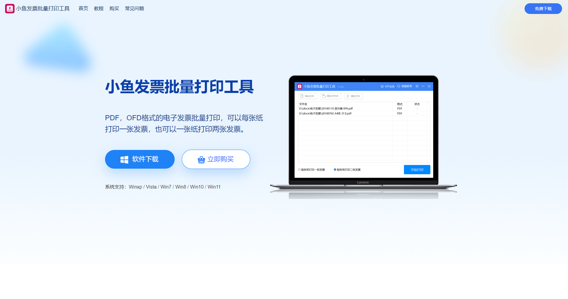 方法②:打开浏览器,搜索“小鱼发票批量打印工具”官网,进入页面后,点击“免费下载”按钮,即可下载软件安装包。