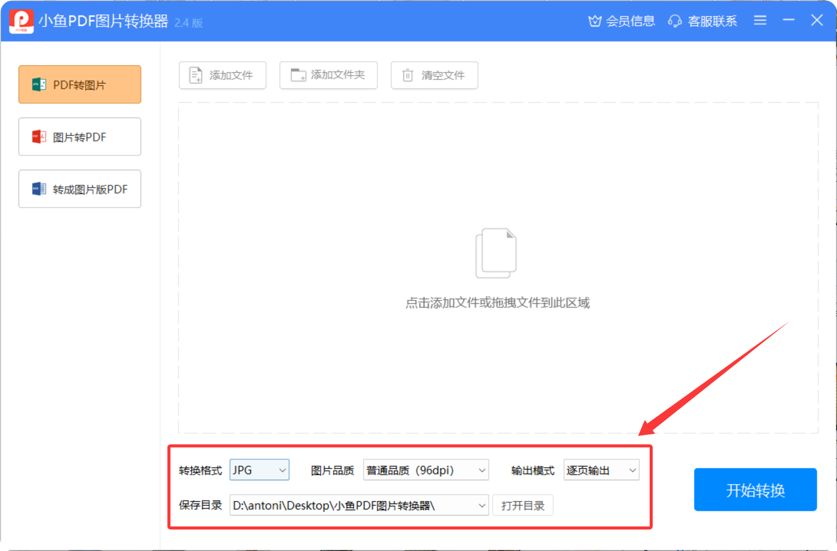 根据需要设置转换格式、图片质量、输出模式等参数。