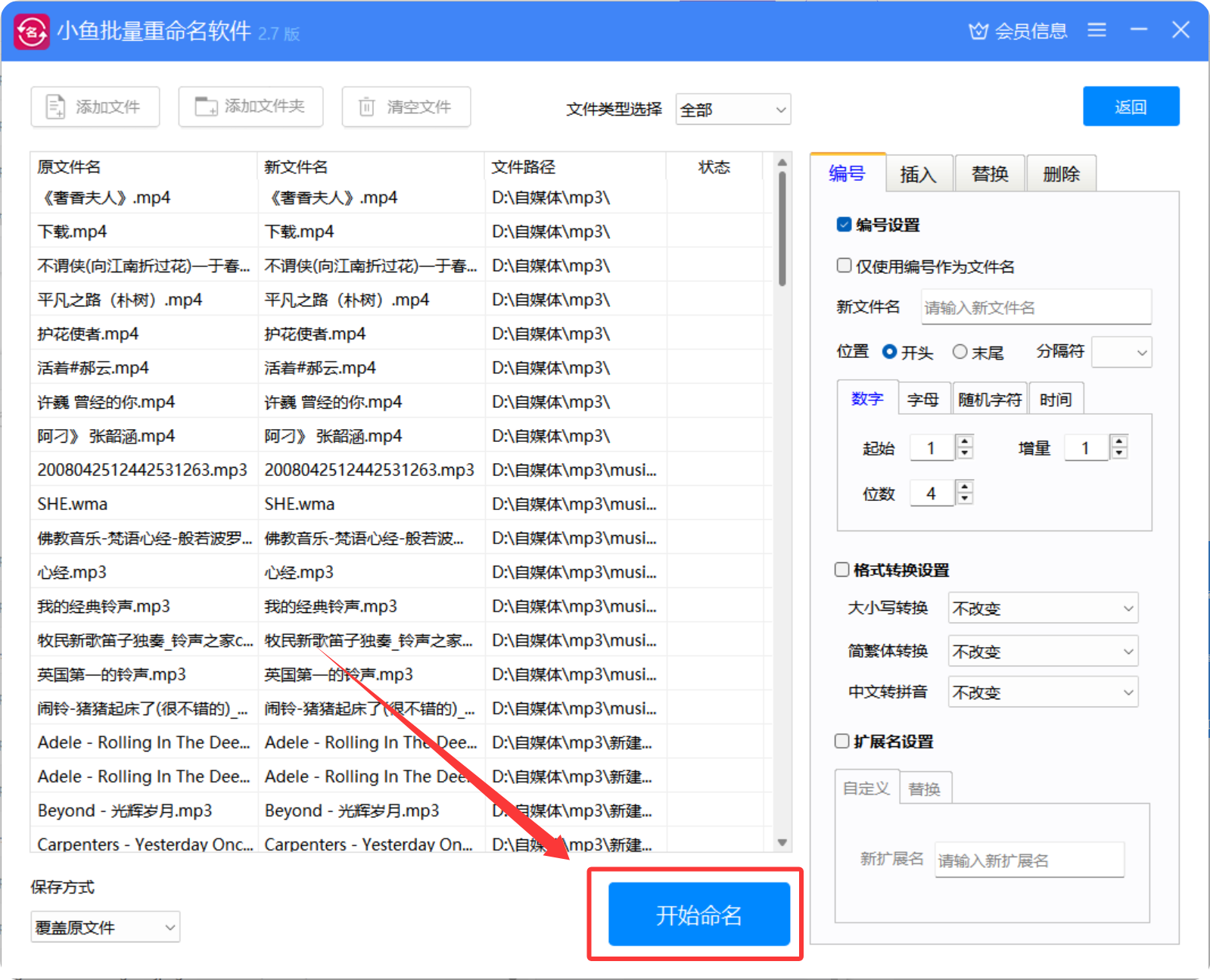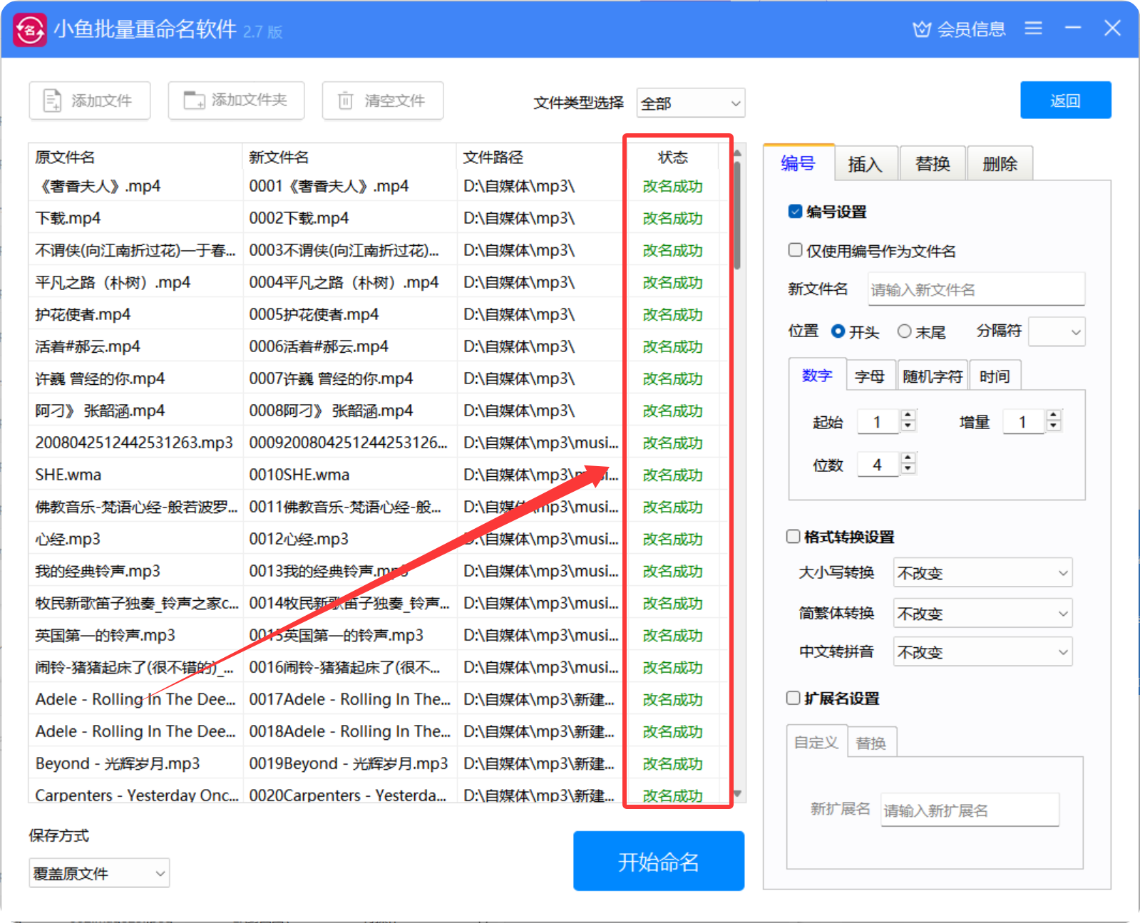 6、点击"开始命名"按钮,软件将自动完成批量重命名操作。