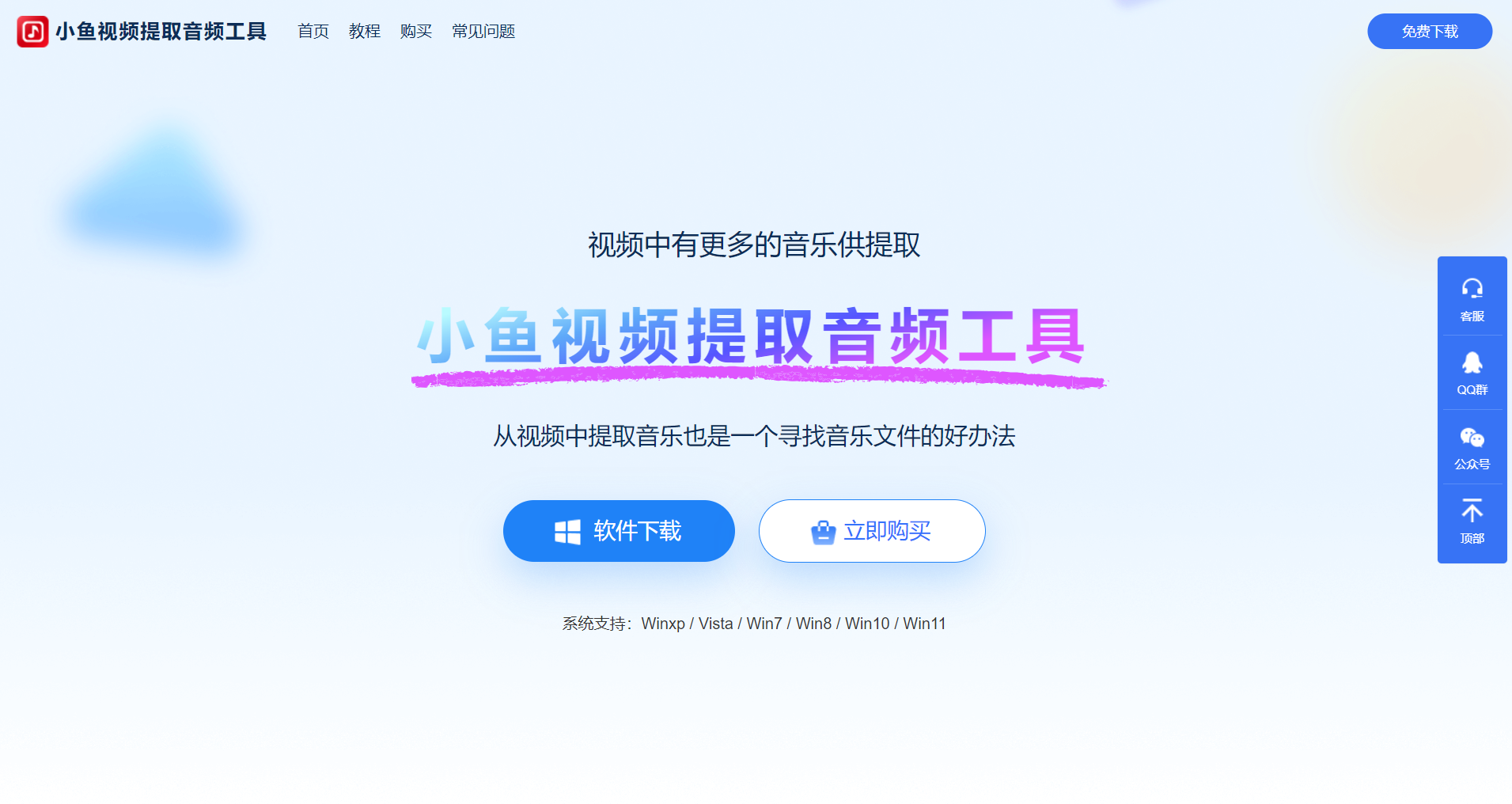 方法②:打开浏览器,搜索“小鱼视频提取音频工具”官网,进入页面后,点击“免费下载”按钮,即可下载软件安装包。