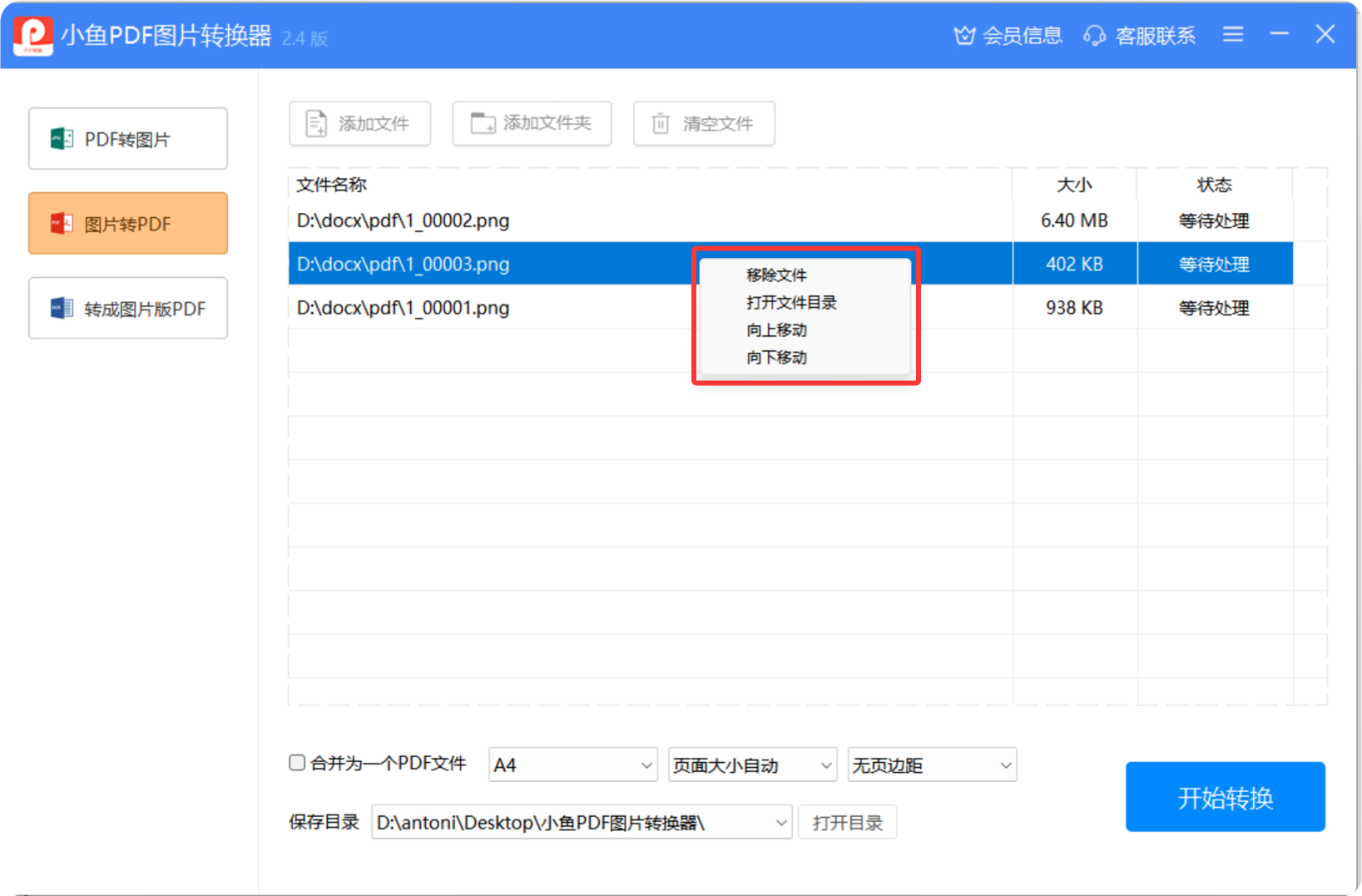步骤4、可以直接在软件界面对转换的图片文件进行顺序调整,通过拖拽的方式轻松改变图片在最终PDF文件中的排列顺序。