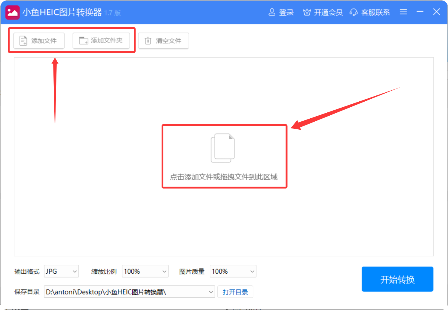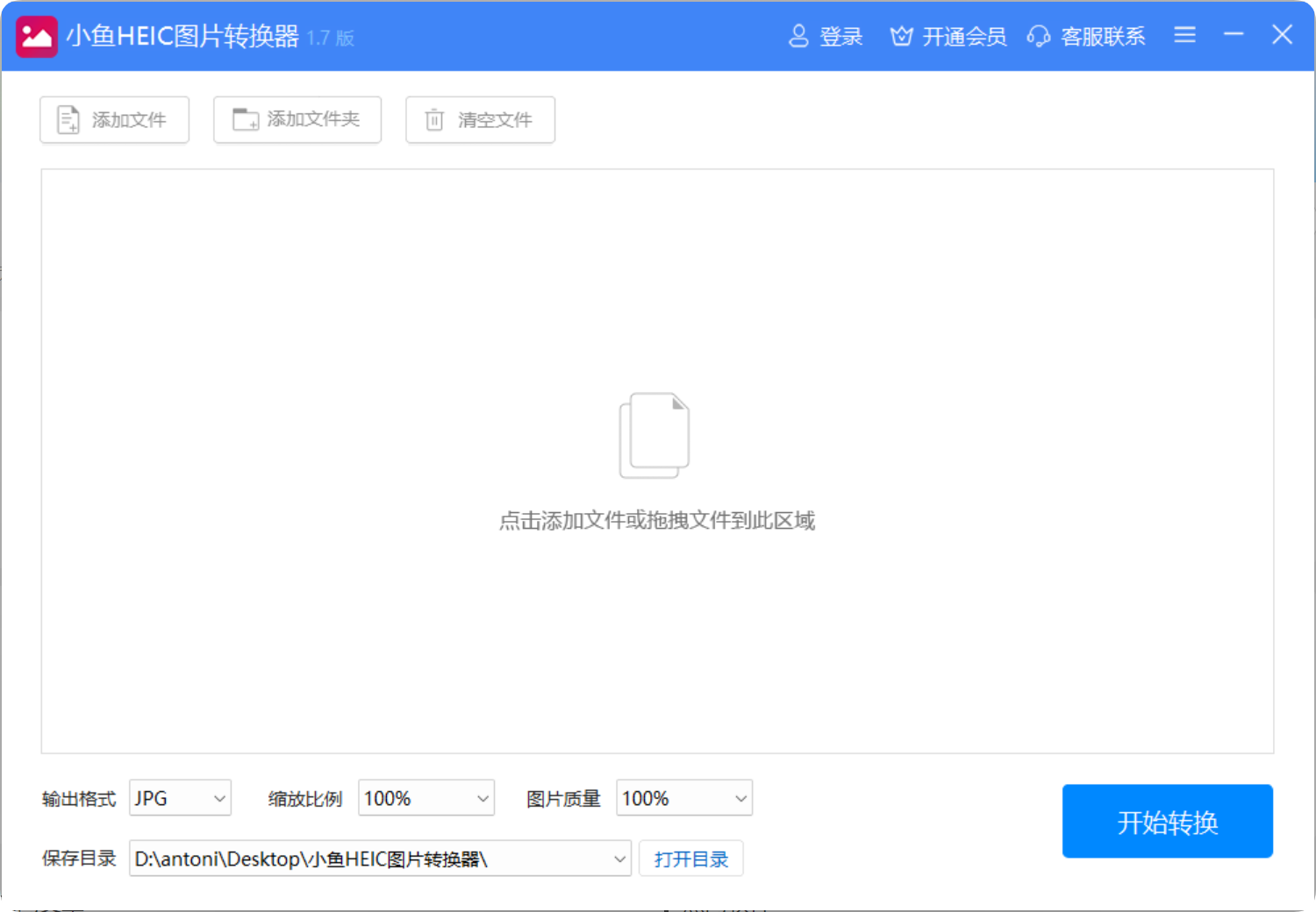 打开小鱼HEIC图片转换器,点击"添加文件"按钮,选择需要转换的HEIC图片,或直接将图片拖放到软件界面中。