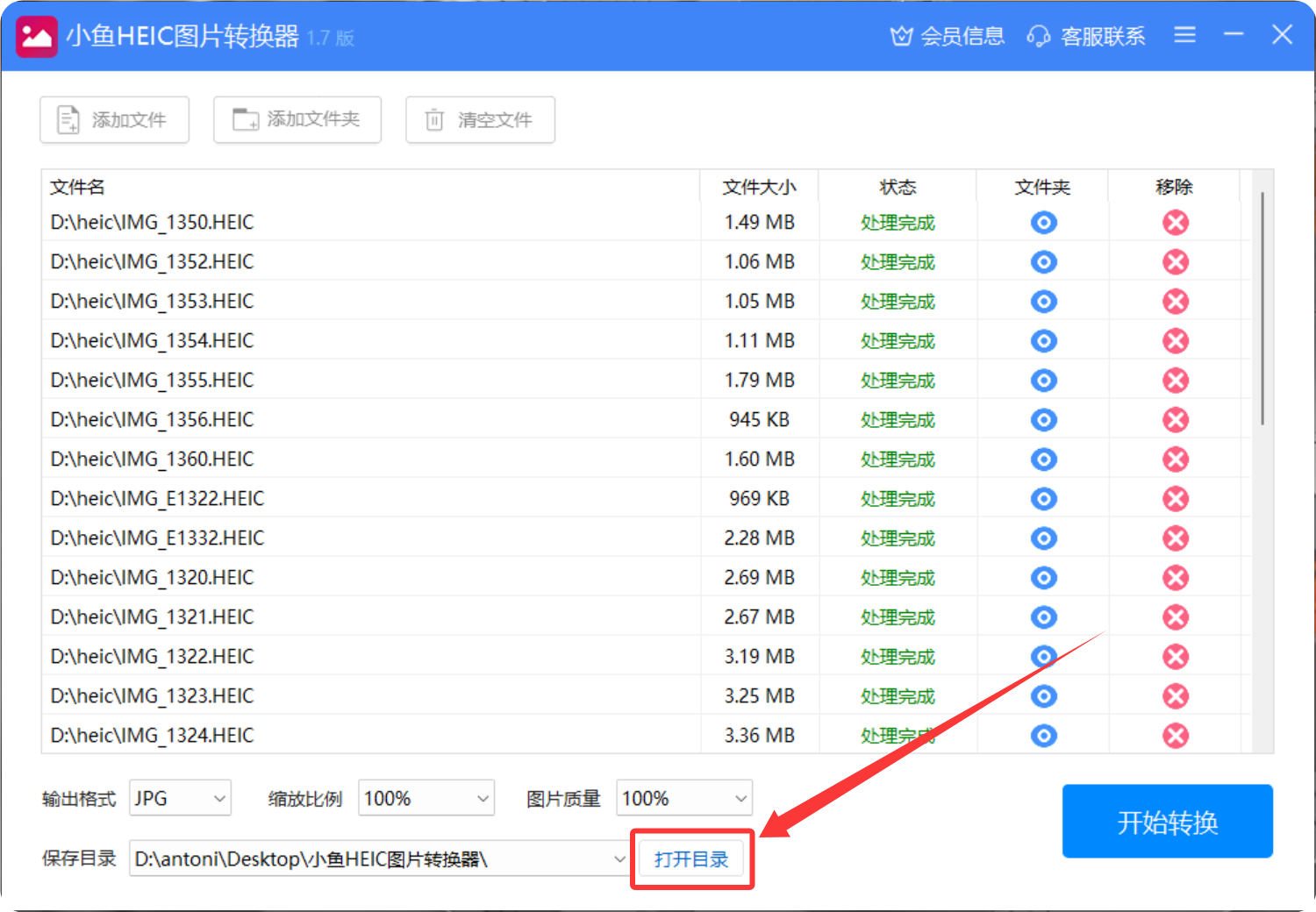 设置完成后,点击"开始转换"按钮,软件将自动开始批量转换图片。转换完成后,您可以在输出目录中找到转换后的图片文件。