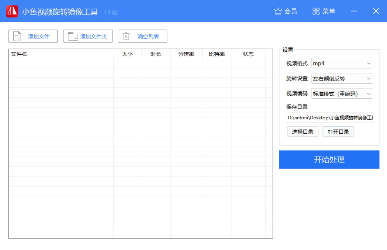 需要处理的视频文件添加完成,并设置好需要处理的视频参数后,点击右侧的“开始处理”按钮即可执行处理任务。