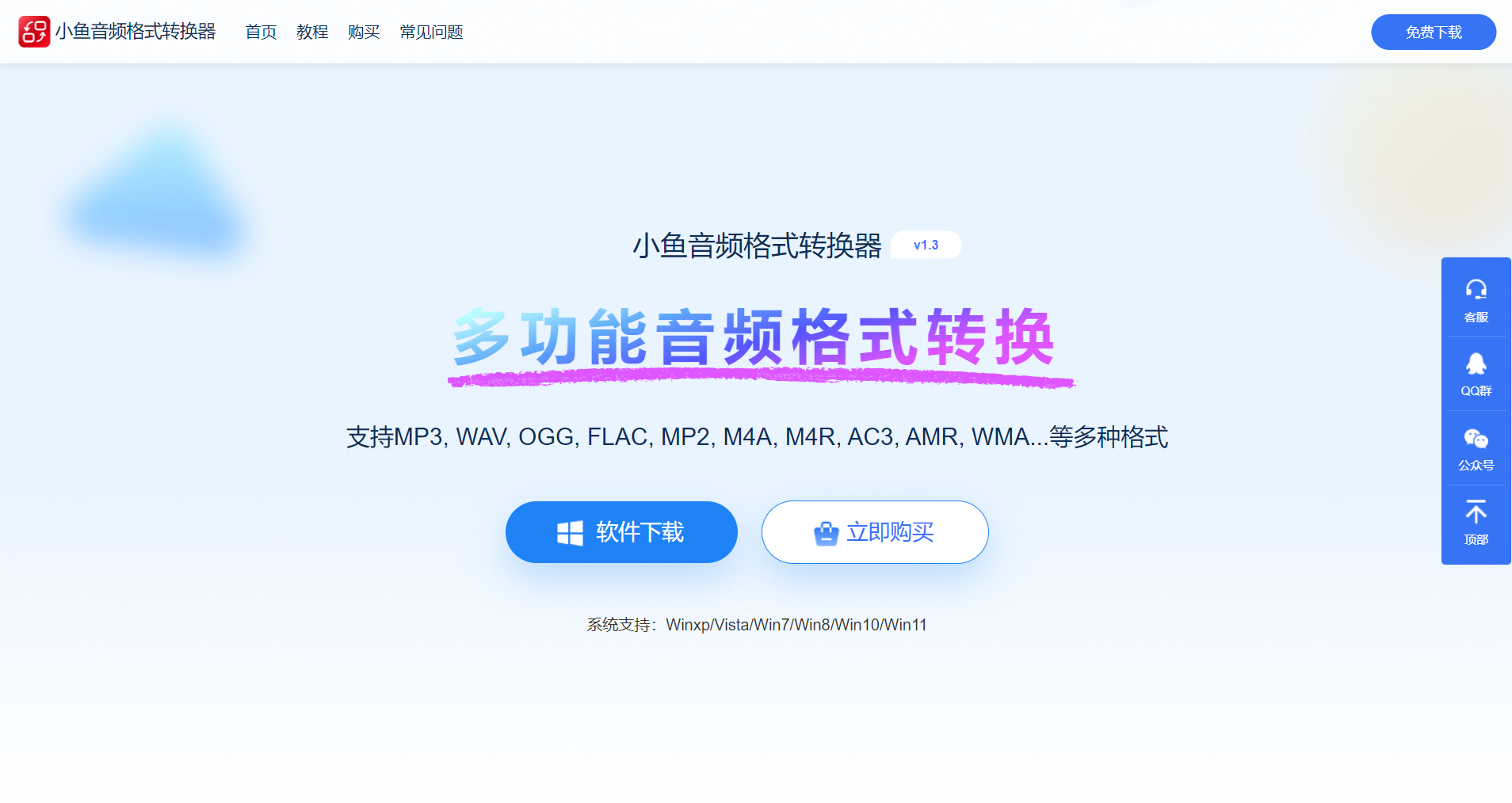 方法②:打开浏览器,搜索“小鱼音频格式转换器”官网,进入页面后,点击“免费下载”按钮,即可下载软件安装包。