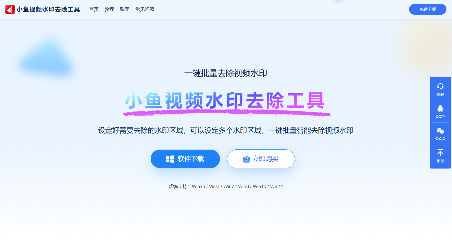方法②:打开浏览器,搜索“小鱼视频水印去除工具”官网,进入页面后,点击“免费下载”按钮,即可下载软件安装包。